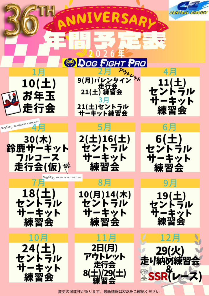年間走行会予定カレンダー 【兵庫県】セントラルサーキット走行会年間スケジュール|月別開催情報 兵庫県のセントラルサーキットでの走行会や鈴鹿サーキット走行会も!? 変更の可能性がありますので、最新情報はSNSをご確認くださいませ。 最新のセントラルサーキット走行会へのエントリーはこちらからお申込みください★ 走行会へのエントリー